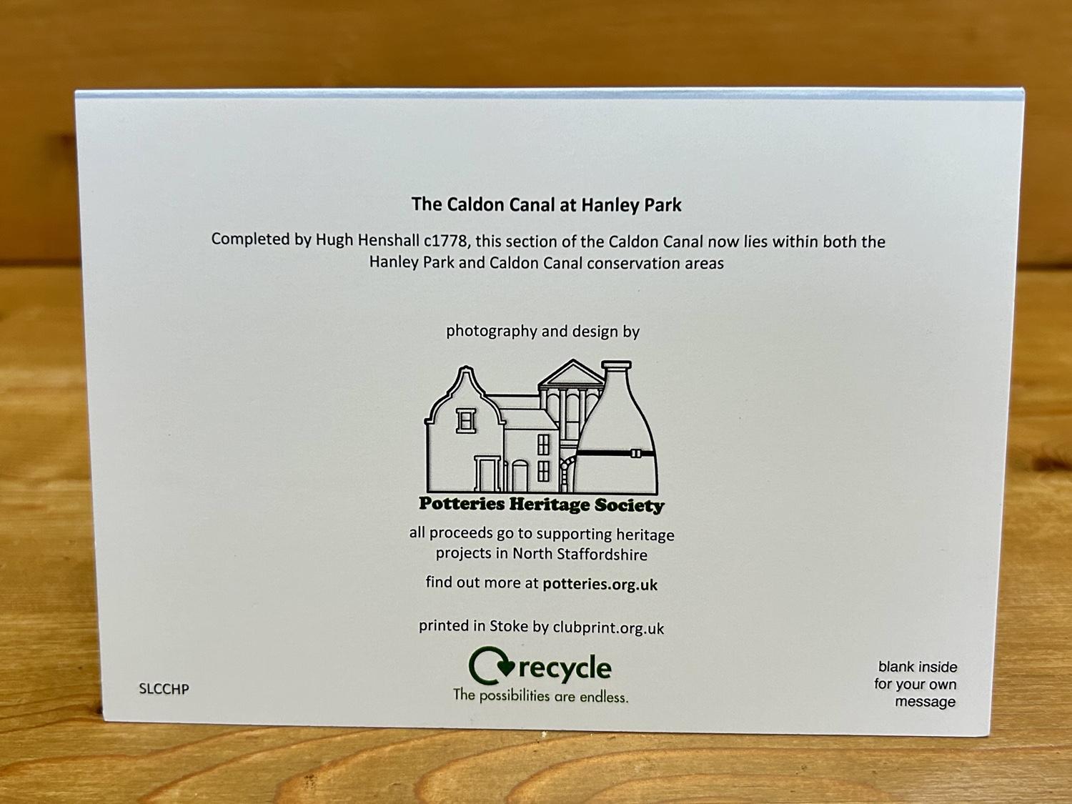PHS Christmas Card with envelope. Photograph of the Caldon Canal at Hanley Park in the snow. A6 size (150mm x 105mm). Blank inside for your own message. Price: £2.00 Quantity *